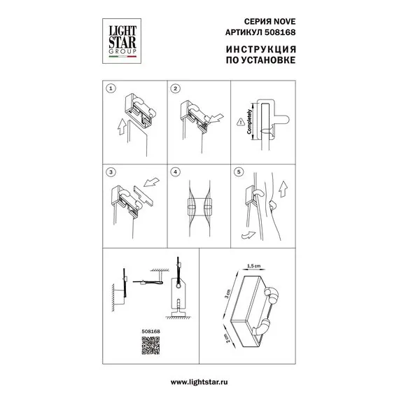 Артикул: 508168; Бренд: Lightstar; Коллекция: Nove; Стиль: Loft; Тип светильника: Тканевый трек NOVE; Материал каркаса: пластик, Пластик; Цвет каркаса: черный, Черный; Длина, мм: 30; Ширина, мм: 15; высота: 20; Вес, кг: 0,004; Штрихкод: 8053176004664